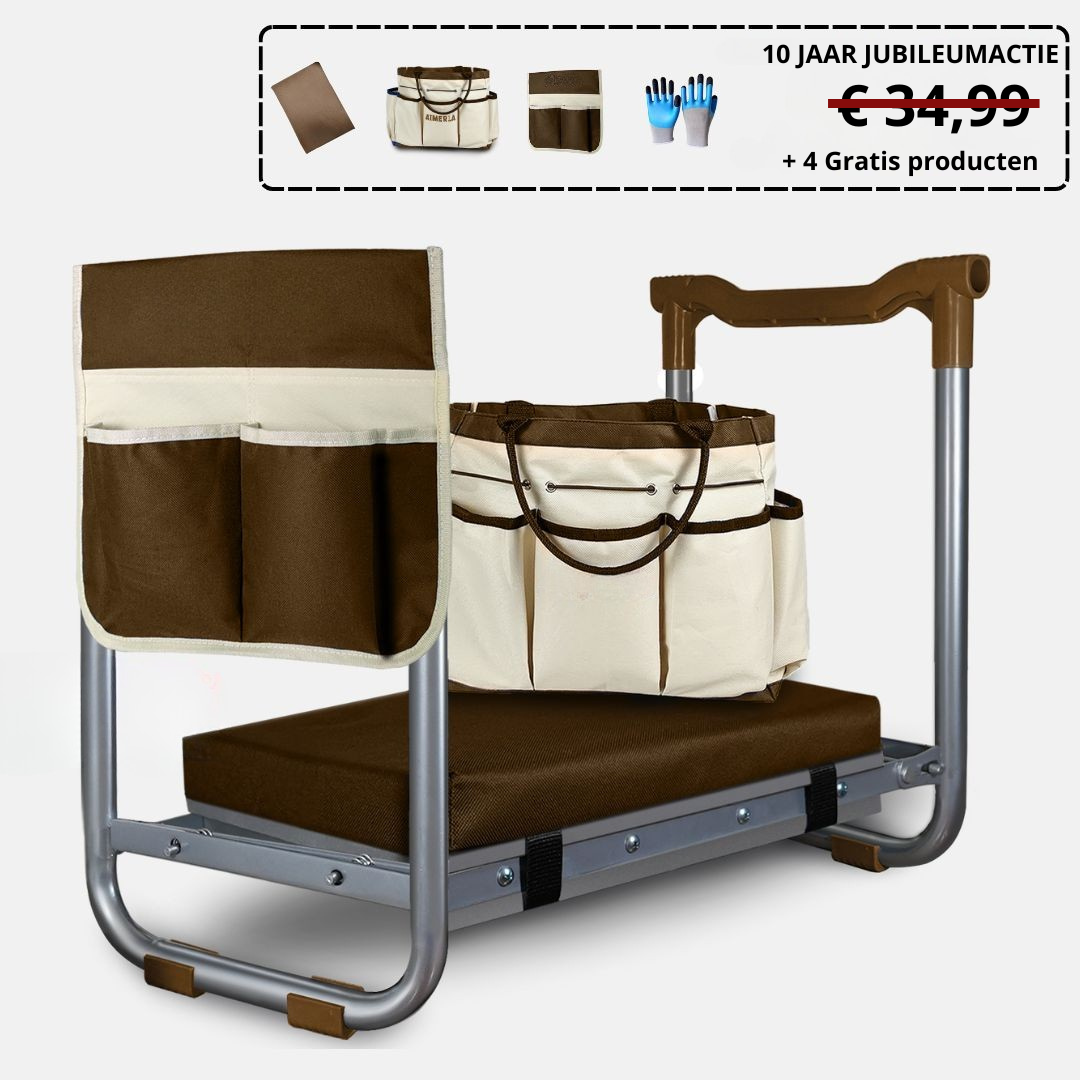 "Nooit meer last van pijnlijke knieën tijdens het tuinieren – dit kniebankje is een absolute lifesaver!